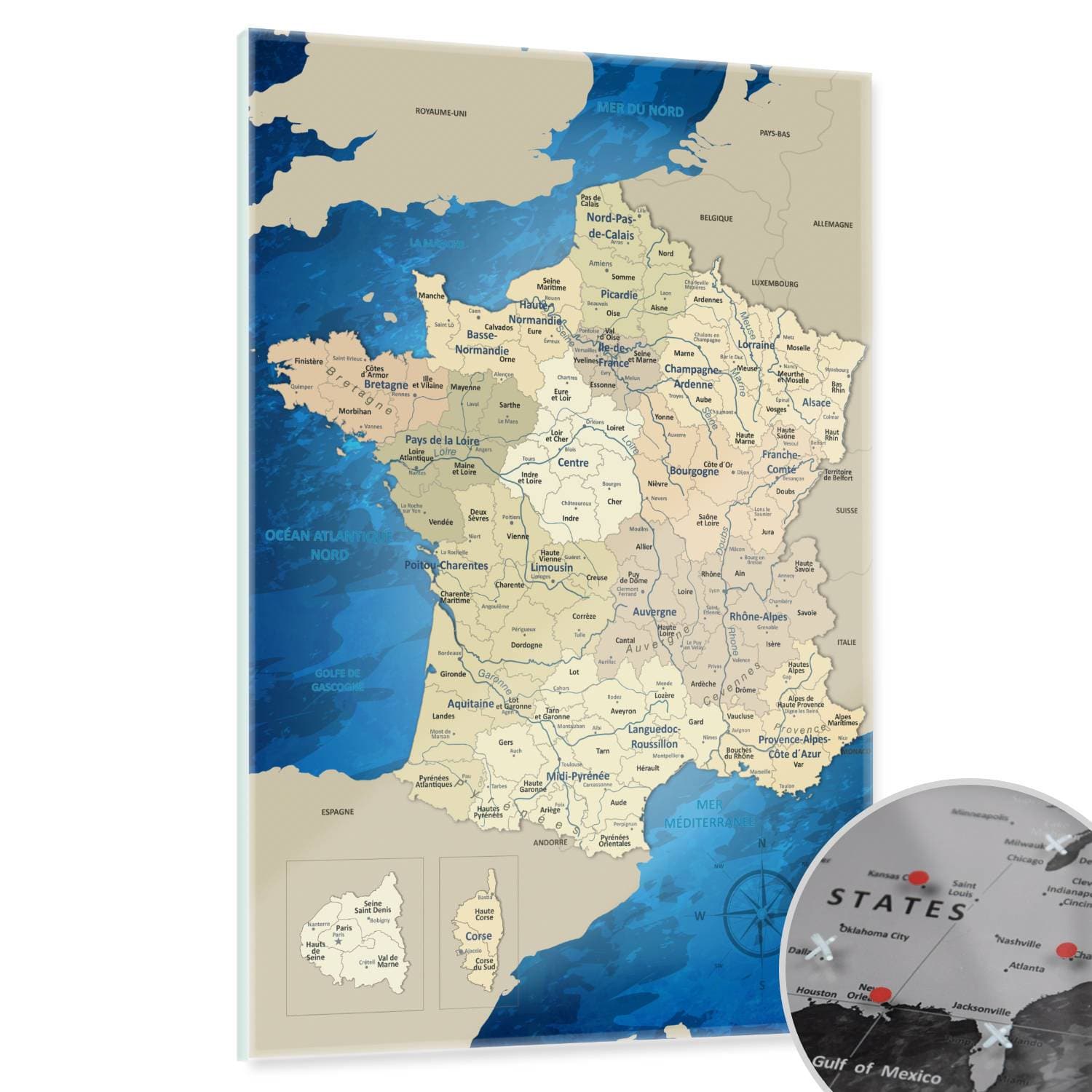 Magnetisches Glasbild - Frankreichkarte Blue Ocean